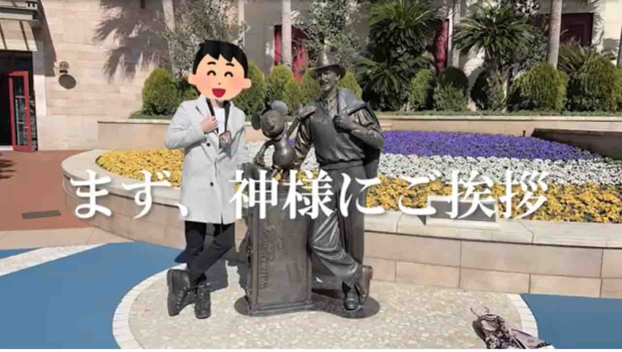 ディズニーシー入り口にいるウォルト様と記念撮影📸